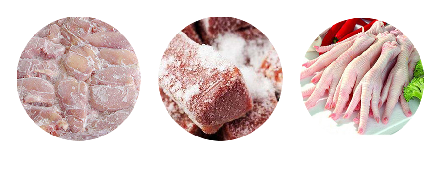该设备专业⽤于对⾁制品冰冻式物料的⾃动解冻,如:鸡⽖、鸡腿、鸡翅、猪⾁(⽪)、⽜⾁、兔⾁、鸭⾁或其他⾁类冻品,完全符合GMP、HACCP的认证要求,具有卫⽣、⾼效、节能的特点。
